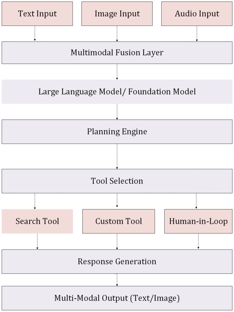 The development of effective multi-modal AI agents involves integrating technologies that can handle distinct types of data inputs and processing. The core architectural components include:
